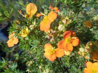 Obtention récente d'Holger HACHMANN (Barmstedt, Allemagne, 2014), formant un petit arbuste caduque très rustique, arrondi, présentant en été une longue floraison de fleurs simples rosacées, orange vif devenant jaune orangé en été, et de Ø supérieur aux variétés existantes.
